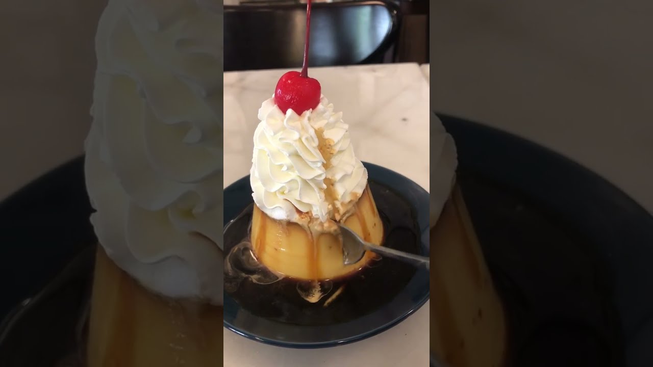 プリン本体はほどよいかたさと風味で、サッパリめに仕上がってます。あの高さのクリームを支えているだけあり、見た目からボリューム満点で、お腹をいっぱいにしてくれる予感がひしひしとします!